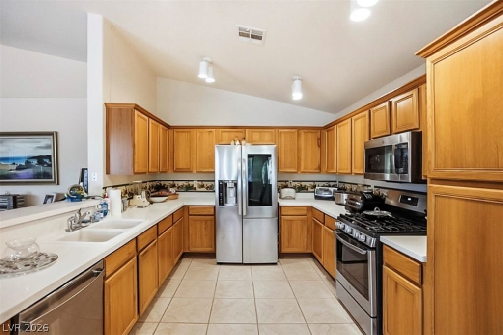 OWNER WILL PAY OFF SOLAR!! Single-story home in the gated community of Stallion Mountain featuring 4 bedrooms, 2 baths, and 2,056 sqft. This open-concept floor plan offers vaulted ceilings and a spacious great room that flows into the kitchen with solid surface countertops, stainless steel appliances, and a dining area. Split-bedroom layout provides privacy, with a large primary suite separate from the secondary bedrooms, complete with bay window, dual sinks, soaking tub, separate shower, and walk-in closet. Tile and carpet flooring throughout, plus a dedicated laundry room. Situated on a cul-de-sac lot with a covered patio and spacious backyard, ideal for relaxing or entertaining. Convenient location with easy access to shopping, dining, and community amenities.