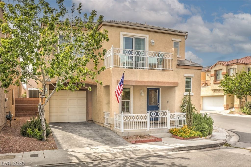 Charming two-story home in the highly sought-after Southwest Las Vegas! Situated on a prime corner lot just a short walk to the community park and pool; this home offers the perfect blend of comfort and convenience. Featuring 3 bedrooms, 3 bathrooms, and over 1,200 sq ft of living space, it's designed for easy, everyday living. Enjoy fresh air and relaxation with a private balcony off the second bedroom. This home also boasts a newly upgraded kitchen with stainless steel appliances as well as modern-upgraded flooring throughout. Move-in ready and waiting for its next owner to call this HOME.
